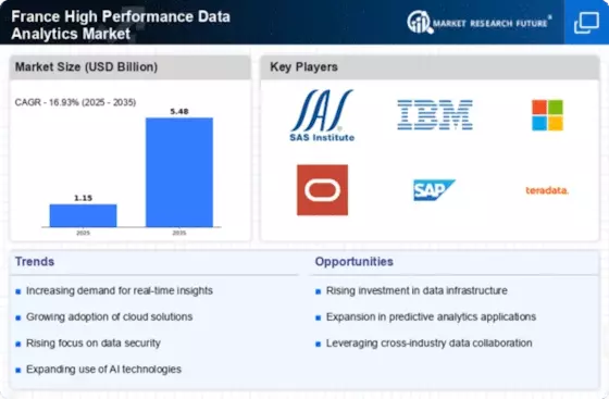 The France High Performance Data Analytics Hpda Market is experiencing a notable surge in demand for real-time analytics. Organizations across various sectors, including finance, healthcare, and retail, are increasingly seeking to leverage real-time data insights to enhance decision-making processes. This trend is driven by the need for immediate responses to market changes and customer behaviors. According to recent data, the market for real-time analytics in France is projected to grow at a compound annual growth rate (CAGR) of approximately 15% over the next five years. This growth is indicative of a broader shift towards data-driven strategies, where timely information is paramount for maintaining competitive advantage. Consequently, businesses are investing in high-performance data analytics solutions that can process vast amounts of data swiftly and efficiently.