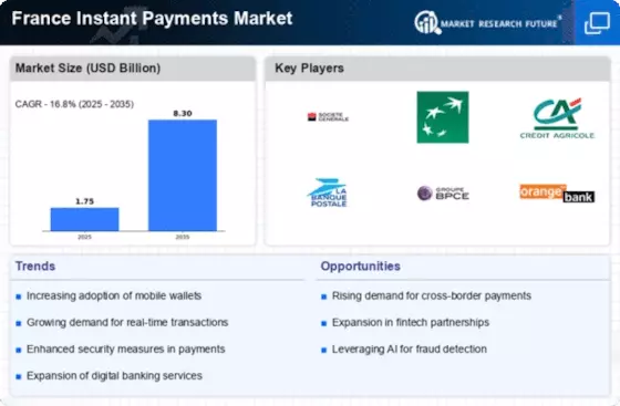The regulatory landscape in France plays a pivotal role in shaping the France Instant Payments Market. The European Union's Payment Services Directive 2 (PSD2) has established a framework that encourages competition and innovation among payment service providers. This regulatory support is crucial for the growth of instant payment solutions, as it mandates transparency and security in transactions. Additionally, the French government has been proactive in promoting instant payment adoption through initiatives aimed at enhancing financial inclusion. As a result, the regulatory environment is conducive to the expansion of instant payment services, which could potentially lead to increased market penetration and consumer trust in the France Instant Payments Market.