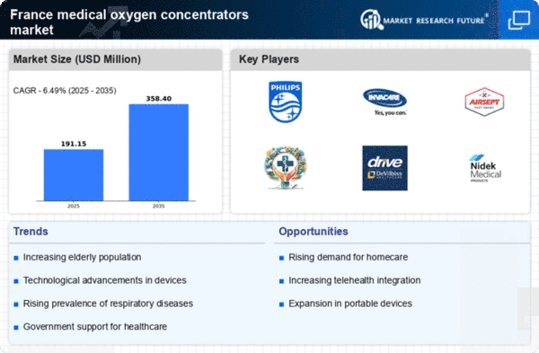 The trend towards home-based healthcare solutions is significantly influencing the medical oxygen-concentrators market. With a growing emphasis on patient-centered care, many healthcare systems in France are advocating for treatments that can be administered at home. This shift is driven by the desire to enhance patient comfort and reduce hospital readmissions. Medical oxygen-concentrators are particularly well-suited for home use, as they are portable and user-friendly. Market data indicates that the home healthcare segment is projected to grow at a CAGR of 8.5% over the next five years. This trend is further supported by advancements in technology, which have made these devices more efficient and accessible. As patients increasingly prefer receiving care in their own environments, the demand for medical oxygen-concentrators is expected to rise, thereby bolstering the market.