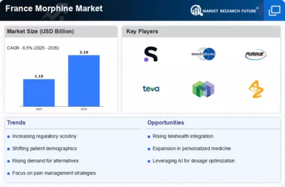 The France Morphine Market is significantly influenced by stringent regulatory frameworks that govern the production, distribution, and prescription of morphine. The French government, through agencies such as the National Agency for the Safety of Medicines and Health Products (ANSM), enforces regulations to ensure the safe use of morphine. These regulations are designed to prevent misuse and ensure that morphine is available for patients in need. In 2025, the French government reported a 10% increase in morphine prescriptions, indicating a growing recognition of its importance in pain management. Compliance with these regulations not only enhances patient safety but also fosters trust in the healthcare system, thereby driving the demand for morphine in France.