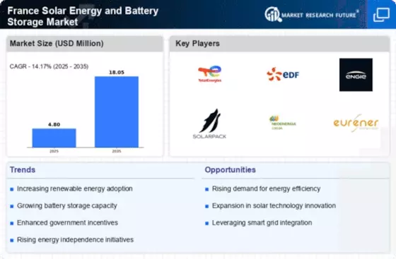 Urbanization and infrastructure development are influencing the France Solar Energy and Battery Storage Market. As urban areas expand, the demand for energy-efficient solutions increases. Cities in France are increasingly integrating solar energy systems into new infrastructure projects, such as residential buildings and commercial complexes. In 2025, urban solar installations grew by 25%, driven by initiatives to create sustainable cities. Additionally, the French government has launched programs to promote solar energy in urban settings, including rooftop solar installations. This trend towards urban solar adoption is likely to enhance the overall capacity of the France Solar Energy and Battery Storage Market, as more urban dwellers seek to utilize renewable energy sources.