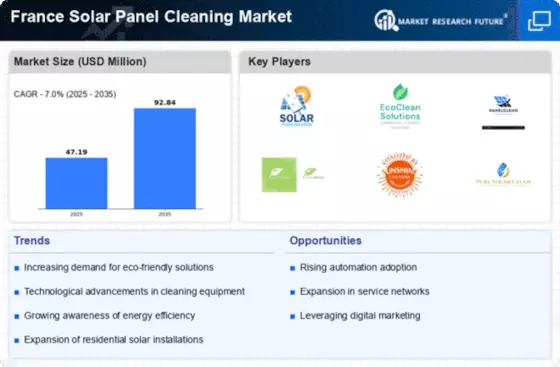 The France Solar Panel Cleaning Market is witnessing advancements in cleaning technologies, which enhance the efficiency and effectiveness of cleaning processes. Innovations such as automated cleaning systems and eco-friendly cleaning solutions are becoming increasingly popular among service providers. These technologies not only improve cleaning outcomes but also reduce water usage and environmental impact. As solar panel owners become more aware of these advancements, the demand for technologically advanced cleaning services is expected to rise. This trend indicates a shift towards more sustainable practices within the industry, aligning with the broader goals of renewable energy and environmental conservation.