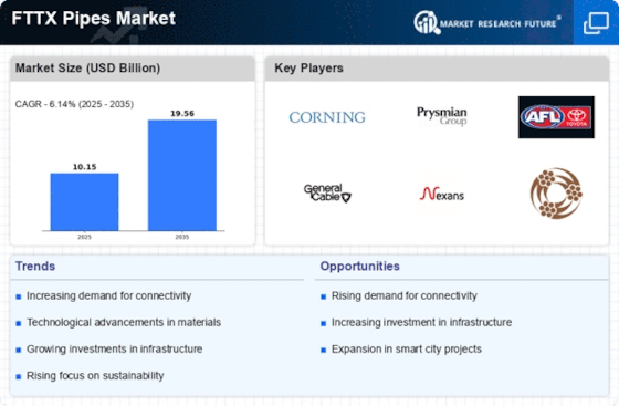 The development of smart cities is significantly influencing the FTTX Pipes Market. As urban areas evolve to incorporate advanced technologies, the need for robust telecommunications infrastructure becomes paramount. Smart city initiatives often rely on high-speed internet connectivity to support various applications, including traffic management, public safety, and energy efficiency. The FTTX Pipes Market stands to benefit from this trend, as municipalities invest in fiber optic networks to facilitate these technologies. With projections indicating that smart city investments could reach trillions of dollars in the coming years, the demand for FTTX pipes is expected to grow substantially, aligning with the broader goals of urban modernization.