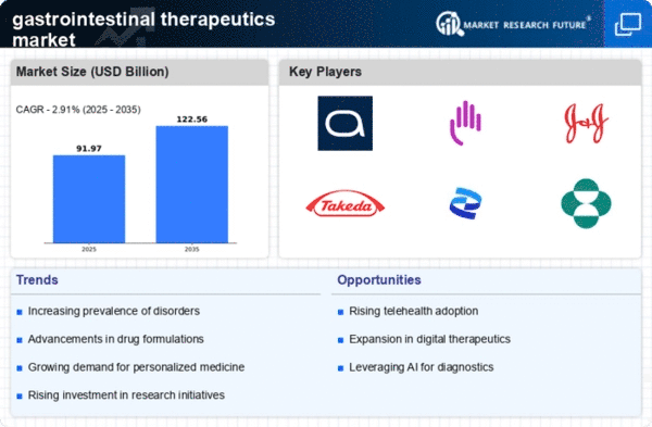 The Middle East and Africa (MEA) region, with a market share of 4.37%, presents untapped potential in the gastrointestinal therapeutics sector. Factors such as increasing healthcare investments, rising awareness of gastrointestinal disorders, and improving healthcare infrastructure are driving growth. Regulatory bodies are beginning to establish frameworks that support the introduction of new therapies, which is crucial for market development. Countries like South Africa and the UAE are leading the way in adopting innovative treatments. The competitive landscape is characterized by a mix of local and international players, with a focus on addressing the unique healthcare challenges of the region. As healthcare access improves, the demand for effective gastrointestinal therapies is expected to rise significantly.