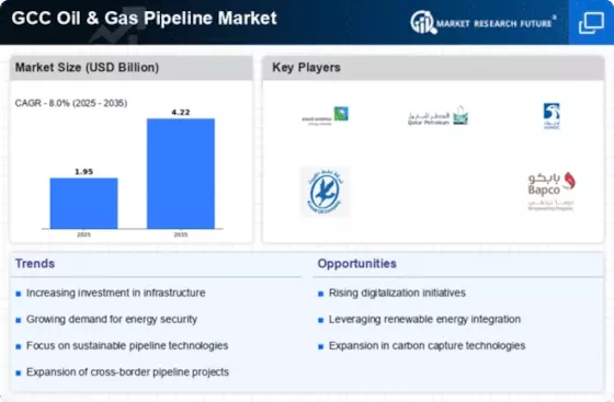 The GCC Oil & Gas Pipeline Market is significantly influenced by government policies aimed at enhancing energy security and sustainability. Regulatory frameworks in countries like Qatar and Kuwait are evolving to promote the development of new pipeline projects while ensuring environmental compliance. For instance, the Qatar National Vision 2030 emphasizes the importance of sustainable energy practices, which may lead to increased investments in pipeline infrastructure. Furthermore, the GCC governments are likely to implement policies that encourage public-private partnerships, thereby facilitating the financing and execution of pipeline projects. This regulatory environment is expected to foster growth in the GCC Oil & Gas Pipeline Market, aligning with global energy transition trends.