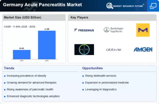 The Germany Acute Pancreatitis Market is significantly influenced by advancements in diagnostic technologies. Enhanced imaging techniques, such as magnetic resonance imaging (MRI) and endoscopic ultrasound, have improved the accuracy of acute pancreatitis diagnoses. These innovations allow for earlier detection and more effective management of the condition, which is crucial for patient outcomes. Furthermore, the integration of artificial intelligence in diagnostic processes is emerging, potentially streamlining the identification of acute pancreatitis cases. As diagnostic capabilities improve, healthcare providers are likely to adopt more targeted treatment approaches, thereby expanding the market for acute pancreatitis therapies in Germany.