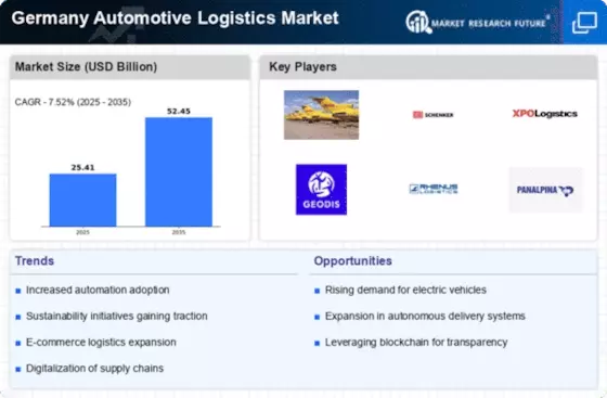 The Germany Automotive Logistics Market is experiencing a surge in technological advancements that enhance operational efficiency. Innovations such as automated warehousing, real-time tracking systems, and advanced data analytics are becoming increasingly prevalent. For instance, the integration of Internet of Things (IoT) devices allows for seamless communication between vehicles and logistics providers, optimizing routes and reducing delivery times. According to recent data, the adoption of these technologies is projected to increase logistics efficiency by up to 30% in the coming years. This trend not only streamlines operations but also reduces costs, making it a critical driver for the growth of the Germany Automotive Logistics Market.