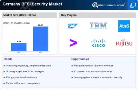 Regulatory pressures are a significant driver in the Germany BFSI Security Market. The implementation of stringent regulations, such as the General Data Protection Regulation (GDPR) and the Payment Services Directive 2 (PSD2), has heightened the need for robust security measures among financial institutions. Compliance with these regulations is not only mandatory but also critical for maintaining customer trust and avoiding hefty fines. Financial institutions in Germany are investing heavily in compliance solutions, which has led to a marked increase in demand for security services. Recent estimates suggest that compliance-related expenditures in the BFSI sector could reach 5 billion euros by 2026. This regulatory landscape is compelling organizations to prioritize security investments, thereby driving growth in the Germany BFSI Security Market.