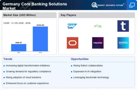 The Germany Core Banking Solutions Market is significantly influenced by stringent regulatory requirements imposed by both national and European authorities. Regulations such as the European Union's PSD2 and GDPR necessitate that banks enhance their compliance frameworks, which in turn drives the demand for sophisticated core banking solutions. Financial institutions are investing heavily in technology to ensure adherence to these regulations, with compliance-related expenditures projected to increase by approximately 15% annually. This focus on regulatory compliance not only mitigates risks but also fosters trust among consumers, thereby enhancing the overall stability of the banking sector. Consequently, core banking solution providers are likely to see increased opportunities as banks seek to upgrade their systems to meet these evolving regulatory standards.