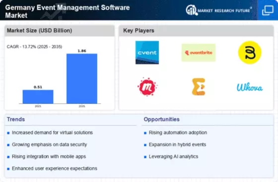 The Germany Event Management Software Market is witnessing a notable shift towards digital solutions. As organizations increasingly recognize the benefits of automation and efficiency, the demand for comprehensive event management software is on the rise. According to recent data, approximately 60 percent of event planners in Germany have adopted digital tools to streamline their processes. This trend is likely to continue, as businesses seek to enhance their operational capabilities and improve attendee experiences. The integration of features such as online registration, ticketing, and real-time analytics is becoming essential for successful event execution. Consequently, the growing adoption of digital solutions is a significant driver for the Germany Event Management Software Market, as it aligns with the broader digital transformation trends across various sectors.