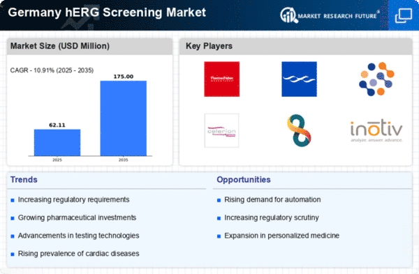 the hERG screening market in Germany is benefiting from investment in drug development initiatives. Pharmaceutical companies are allocating substantial resources to research and development, with a focus on creating safer and more effective therapeutic agents. In 2025, the total investment in drug development is projected to reach €10 billion, with a significant portion directed towards herg screening to mitigate the risks of cardiac toxicity. This influx of funding is likely to enhance the capabilities of laboratories and research institutions, enabling them to adopt cutting-edge technologies and methodologies. As a result, the herg screening market is poised for growth, driven by the industry's commitment to innovation and safety in drug development.