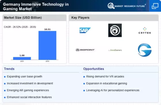 Increased investment in game development is a key driver of the Germany immersive technology in gaming market. As more developers recognize the potential of immersive technologies, funding for projects utilizing VR and AR is on the rise. This influx of capital enables developers to create more sophisticated and engaging gaming experiences. For instance, several German gaming studios have recently secured funding to develop immersive titles that leverage cutting-edge technology. According to industry reports, investment in the German gaming sector has surged, with over 1 billion euros allocated to game development in the past year alone. This trend indicates that as investment continues to grow, the potential for innovative and immersive gaming experiences will likely expand, further propelling the Germany immersive technology in gaming market.