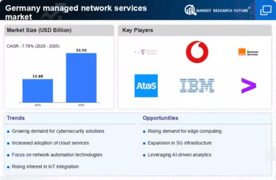 The ongoing digital transformation across various sectors in Germany is a crucial driver for the managed network services market. Companies are increasingly leveraging digital technologies to enhance operational efficiency and customer engagement. This transformation often requires advanced network infrastructure and services to support new digital initiatives. As organizations invest in technologies such as IoT, big data, and AI, the need for managed network services that can provide reliable connectivity and performance becomes paramount. The German government has also been advocating for digitalization, which may further accelerate the demand for managed network services in the coming years.