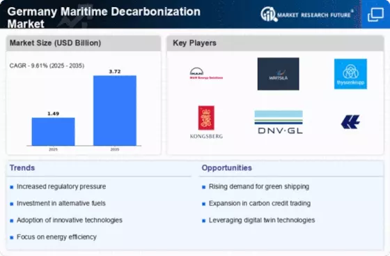 Technological innovation plays a pivotal role in the Germany Maritime Decarbonization Market. The development of energy-efficient vessels, such as those utilizing wind-assisted propulsion and advanced hull designs, is gaining traction. Furthermore, the integration of digital technologies, including AI and IoT, enhances operational efficiency and reduces fuel consumption. According to recent studies, the adoption of such technologies could lead to a 20-30 percent reduction in emissions by 2030. This potential for significant emission reductions encourages stakeholders to invest in research and development, thereby propelling the Germany Maritime Decarbonization Market forward.