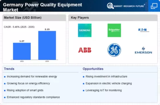 The increasing reliance on digital technologies and automation in various sectors has led to a heightened demand for reliable power supply in the Germany Power Quality Equipment Market. Industries such as manufacturing, healthcare, and data centers require uninterrupted power to maintain operational efficiency. According to recent data, the demand for power quality equipment is projected to grow at a compound annual growth rate of approximately 6% over the next five years. This trend indicates that businesses are prioritizing investments in power quality solutions to mitigate risks associated with power disturbances. As a result, manufacturers of power quality equipment are likely to innovate and enhance their product offerings to meet the evolving needs of the market.