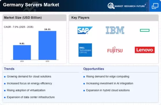The emergence of edge computing is significantly impacting the Germany Servers Market. As businesses seek to process data closer to the source, the demand for edge computing solutions is on the rise. This shift is driven by the proliferation of Internet of Things (IoT) devices and the need for real-time data processing. According to industry reports, the edge computing market in Germany is expected to grow substantially, with a projected increase of 25 percent by 2027. This trend necessitates the deployment of servers that can efficiently handle edge computing workloads, thereby creating opportunities for server manufacturers and service providers. The integration of edge computing into the Germany Servers Market is likely to enhance operational efficiency and enable organizations to respond swiftly to changing market conditions.