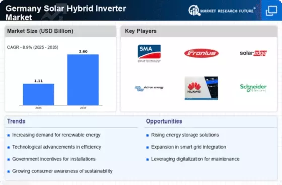 The Germany Solar Hybrid Inverter Market is characterized by rapid technological advancements that enhance the efficiency and functionality of hybrid inverters. Innovations such as smart grid integration, advanced energy management systems, and improved battery storage capabilities are transforming the landscape of solar energy utilization. For example, the introduction of inverters with integrated monitoring systems allows users to optimize their energy consumption and maximize savings. Furthermore, the development of more compact and efficient inverter designs is making solar installations more accessible to a broader audience. As these technologies continue to evolve, they are expected to drive market growth by providing consumers with more reliable and efficient energy solutions, thereby reinforcing the role of hybrid inverters in Germany's energy transition.