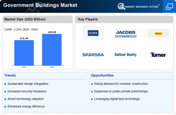 The Government Buildings Market is significantly influenced by evolving regulatory frameworks and compliance standards. Governments are increasingly implementing stringent building codes and sustainability regulations aimed at reducing environmental impact. These regulations often mandate the use of energy-efficient materials and technologies, which can lead to higher initial costs but ultimately result in long-term savings. The push for compliance with these standards is likely to drive demand for specialized construction services and materials, thereby shaping the market landscape. As a result, companies operating within the Government Buildings Market must stay abreast of regulatory changes to remain competitive and ensure project viability.