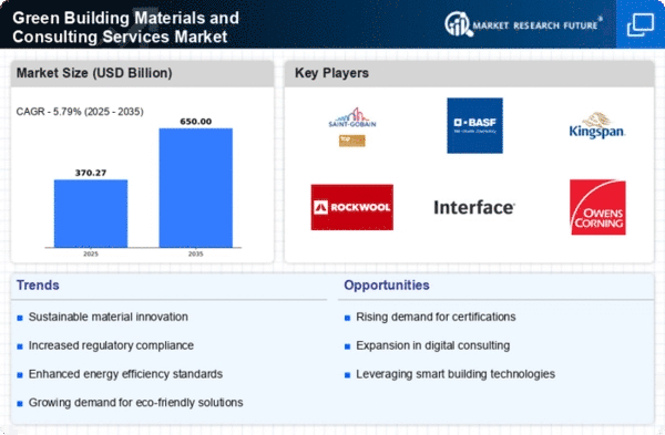 The Green Building Materials and Consulting Services Market is currently characterized by a dynamic competitive landscape, driven by increasing regulatory pressures and a growing emphasis on sustainability. Major players such as Saint-Gobain (FR), BASF (DE), and Kingspan Group (IE) are strategically positioning themselves through innovation and regional expansion. For instance, Saint-Gobain (FR) has focused on enhancing its product portfolio with eco-friendly materials, while BASF (DE) has been investing in digital transformation initiatives to optimize its supply chain and improve customer engagement. These strategies collectively contribute to a competitive environment that is increasingly focused on sustainability and technological advancement.Key business tactics within this market include localizing manufacturing and optimizing supply chains to enhance efficiency and reduce carbon footprints. The competitive structure appears moderately fragmented, with several key players exerting influence over market dynamics. This fragmentation allows for niche players to emerge, yet the collective strength of major companies like Rockwool International (DK) and Interface, Inc. (US) ensures that competition remains robust and innovation-driven.