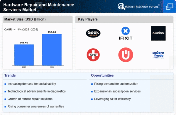 The Middle East and Africa region is gradually emerging in the Hardware Repair and Maintenance Services Market, with a market size of 15.0 in 2024. The growth is primarily driven by increasing smartphone usage and a rising awareness of repair services among consumers. Regulatory efforts to manage electronic waste and promote sustainability are also contributing to market development. As urbanization continues, the demand for reliable repair services is expected to rise, creating new opportunities for service providers.