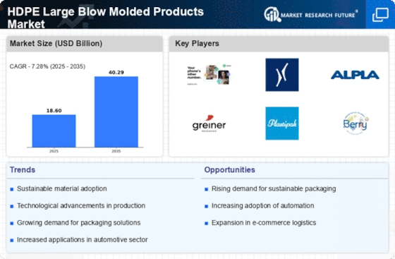 Technological advancements are reshaping the Hdpe Large Blow Molded Products Market, particularly in manufacturing processes. Innovations such as automation and advanced blow molding techniques are enhancing production efficiency and product quality. These technologies allow for greater precision in the molding process, reducing waste and improving the overall sustainability of production. Furthermore, the integration of smart manufacturing technologies is enabling real-time monitoring and optimization of production lines. As a result, manufacturers can respond more swiftly to market demands and consumer preferences. The adoption of these technologies is expected to drive growth in the Hdpe Large Blow Molded Products Market, as companies seek to improve their operational efficiency and product offerings.