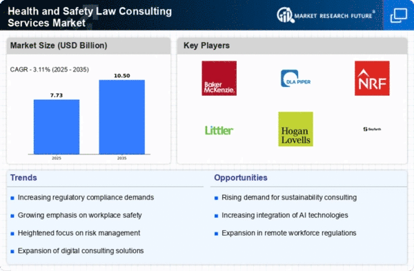 Europe's Health and Safety Law Consulting Services market is valued at 2.25, reflecting a growing emphasis on compliance and safety standards across various sectors. The region is witnessing an increase in regulatory requirements, which drives demand for consulting services. Countries are implementing stricter health and safety laws, prompting organizations to seek expert guidance to navigate these changes effectively. This trend is expected to continue as businesses prioritize employee safety and regulatory adherence.