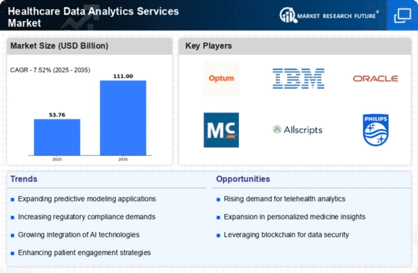 The competitive landscape in North America is robust, featuring key players such as Optum, IBM, and Cerner. These companies leverage advanced technologies like AI and machine learning to enhance their service offerings. The U.S. remains the largest market, supported by a well-established healthcare infrastructure and a high adoption rate of digital health solutions. This environment fosters innovation and attracts investments, solidifying North America's position as a global leader in healthcare analytics.