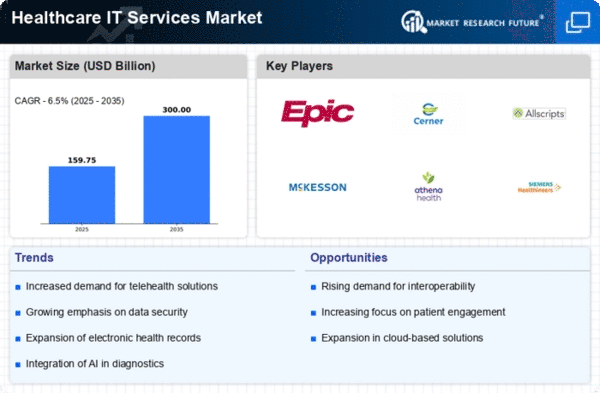 The increasing demand for Electronic Health Records (EHR) is a pivotal driver in the Healthcare IT Services Market. EHR systems facilitate the efficient management of patient data, enhancing the quality of care and operational efficiency. As healthcare providers seek to improve patient outcomes, the adoption of EHR systems has surged, with a projected market growth rate of approximately 10% annually. This trend is driven by regulatory requirements and the need for interoperability among healthcare systems. Consequently, healthcare organizations are investing in IT services that support EHR implementation and maintenance, thereby propelling the Healthcare IT Services Market forward.
