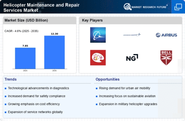 Europe's Helicopter Maintenance and Repair Services Market is valued at 2.5, reflecting a growing demand for maintenance solutions driven by increasing helicopter operations across various sectors. The region benefits from regulatory frameworks that promote safety and efficiency, encouraging investments in maintenance services. The rise in air ambulance services and tourism-related helicopter operations further propels market growth, supported by government initiatives aimed at enhancing aviation safety standards.