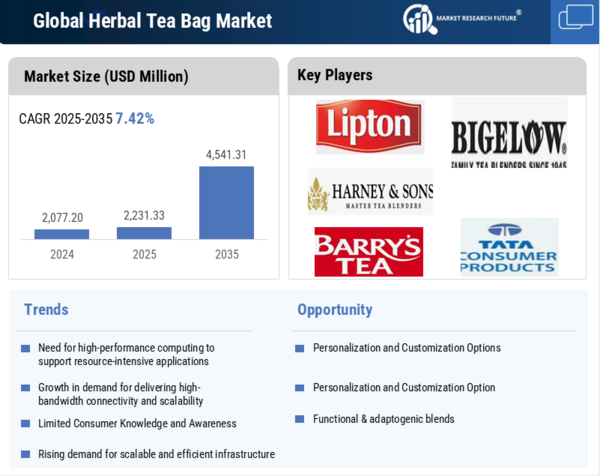 North America is a constantly changing segment of the non-alcoholic beverage industry, molded by increasing customer demands for wellness, convenience, and sustainability. The region's key markets are the United States and Canada, which benefit from a mature retail infrastructure and a growing population of health-conscious consumers. According to the United States Department of Agriculture (USDA), tea is the world's second most consumed beverage after water, and in the United States, black tea accounts for around 80% of tea consumption, with green and herbal teas gaining popularity in recent years. Herbal tea bags, in particular, are in high demand due to their caffeine-free nature and supposed health benefits. Chamomile, peppermint, hibiscus, and ginger are popular ingredients in single-serve and blended products, catering to consumers looking for natural stress relief, digestion, and immunity. The United States Food and Drug Administration (FDA) oversee herbal teas under the Dietary Supplement Health and Education Act (DSHEA), assuring safety and labeling compliance, which has helped to build consumer trust and market growth. Packaging innovation is also a crucial driver, with firms using biodegradable tea bags, recyclable cartons, and resealable pouches to meet environmental standards.