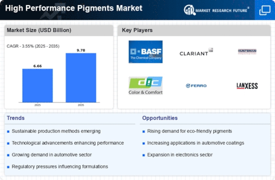 The increasing emphasis on sustainability within various industries appears to be a pivotal driver for the High Performance Pigments Market. As manufacturers strive to reduce their environmental footprint, the demand for eco-friendly pigments is likely to rise. This shift is evidenced by the growing preference for organic and non-toxic pigments, which are perceived as safer alternatives. Furthermore, regulatory frameworks are becoming more stringent, compelling companies to adopt sustainable practices. The market for sustainable pigments is projected to grow at a compound annual growth rate of approximately 5.5% over the next few years, indicating a robust trend towards environmentally responsible production. Consequently, the High Performance Pigments Market is expected to adapt by innovating and offering products that align with these sustainability goals.