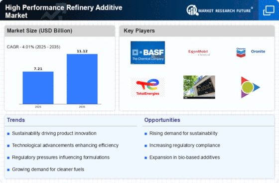 Technological advancements play a pivotal role in shaping the High Performance Refinery Additive Market. Innovations in refining processes, such as advanced catalytic cracking and hydrocracking technologies, are enhancing the efficiency of additive utilization. These technologies enable refiners to optimize the performance of additives, resulting in improved fuel quality and reduced operational costs. For instance, the integration of digital technologies and data analytics in refining operations has led to more precise additive dosing, thereby maximizing their effectiveness. As a result, the High Performance Refinery Additive Market is likely to witness increased adoption of these cutting-edge technologies, which could potentially lead to a market growth rate of around 6% annually in the coming years.