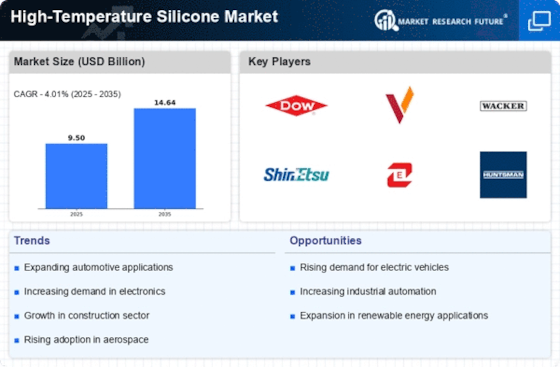 The High-Temperature Silicone Market is also shaped by the increasing regulatory standards across various sectors, including aerospace, automotive, and electronics. As industries face stricter compliance requirements regarding material safety and performance, the demand for high-temperature silicone is likely to rise. These materials are often preferred for their ability to meet stringent regulations related to temperature resistance and chemical stability. In 2025, it is anticipated that the enforcement of these standards will drive manufacturers to adopt high-temperature silicone solutions, thereby expanding the market. This trend suggests that companies are not only focusing on performance but also on compliance, which could lead to a more robust market for high-temperature silicone as industries adapt to evolving regulatory landscapes.