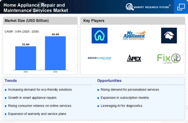 The competitive landscape is robust, with key players like Sears, Mr. Appliance, and Geek Squad dominating the market. The U.S. is the primary contributor, supported by a strong service infrastructure and a growing gig economy that facilitates on-demand repair services. The presence of platforms like HomeAdvisor and TaskRabbit enhances accessibility, making it easier for consumers to find reliable repair services, thus driving market growth.