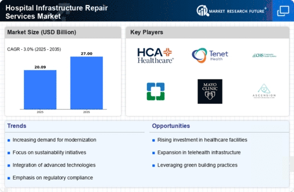 The competitive landscape in North America is robust, featuring key players such as HCA Healthcare, Tenet Healthcare, and Cleveland Clinic. These organizations are investing heavily in infrastructure upgrades and maintenance services to enhance operational efficiency. The presence of advanced healthcare technologies and a focus on patient-centered care are also pivotal in shaping the market dynamics, making North America a critical hub for hospital infrastructure repair services.