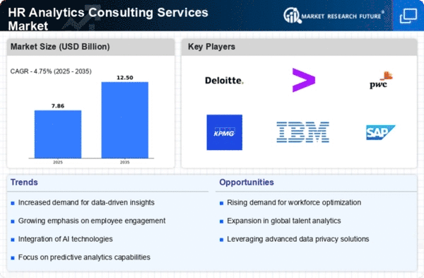 The HR Analytics Consulting Services Market is experiencing a notable increase in demand for talent management solutions. Organizations are increasingly recognizing the importance of attracting, retaining, and developing talent in a competitive landscape. According to recent data, the talent management software market is projected to grow at a compound annual growth rate of approximately 10% over the next few years. This growth is likely to drive the need for consulting services that can help organizations leverage analytics to optimize their talent strategies. As companies seek to enhance their workforce capabilities, HR analytics consulting services are becoming essential for aligning talent management with business objectives.