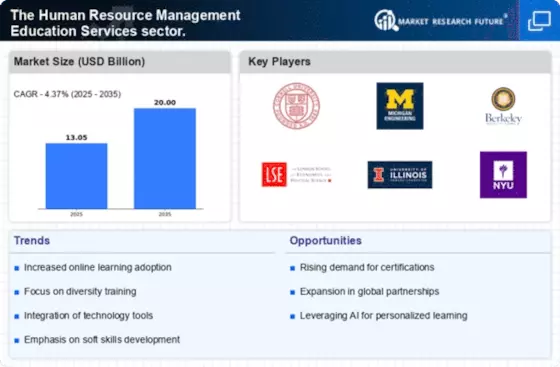 Europe's The Human Resource Management Education Services sector. is valued at 3.75, reflecting a growing emphasis on HR education across the region. Factors such as increasing globalization, regulatory changes, and a focus on employee well-being are driving demand for HR professionals. Educational institutions are adapting their curricula to meet these evolving needs, fostering a more skilled workforce.