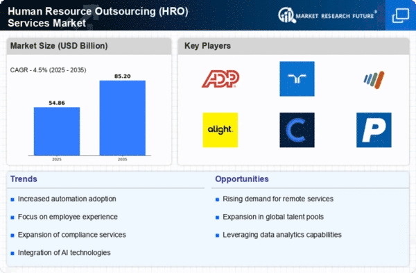 The competitive landscape in North America is robust, featuring key players such as ADP, ManpowerGroup, and Ceridian. The U.S. remains the largest market, supported by a strong economy and a high adoption rate of HRO services. The presence of established firms and innovative startups fosters a dynamic environment, ensuring continuous growth and adaptation to market needs.