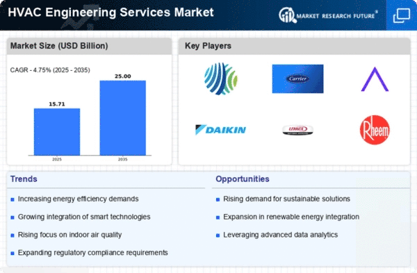 The HVAC Engineering Services Market is experiencing a notable transformation due to rapid technological advancements. Innovations such as IoT-enabled systems and AI-driven analytics are enhancing operational efficiency and energy management. These technologies allow for real-time monitoring and predictive maintenance, which can reduce operational costs by up to 30 percent. Furthermore, the integration of smart thermostats and automated controls is becoming increasingly prevalent, leading to improved user comfort and energy savings. As a result, HVAC engineering services are evolving to incorporate these advanced technologies, which are expected to drive market growth significantly in the coming years.