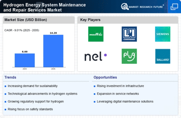 The Hydrogen Energy System Maintenance and Repair Services Market is currently characterized by a dynamic competitive landscape, driven by the increasing demand for sustainable energy solutions and the growing adoption of hydrogen technologies. Key players such as Air Products (US), Linde (DE), and Plug Power (US) are strategically positioning themselves through innovation and partnerships, which collectively enhance their operational capabilities. Air Products (US) focuses on expanding its hydrogen production and distribution networks, while Linde (DE) emphasizes technological advancements in hydrogen storage and transportation. Plug Power (US) is actively pursuing collaborations to enhance its fuel cell technology, thereby shaping a competitive environment that prioritizes technological leadership and operational efficiency.In terms of business tactics, companies are increasingly localizing manufacturing to reduce supply chain vulnerabilities and optimize operational costs. The market structure appears moderately fragmented, with several players vying for market share, yet the influence of major companies remains substantial. This competitive structure fosters an environment where innovation and strategic partnerships are essential for maintaining a competitive edge.