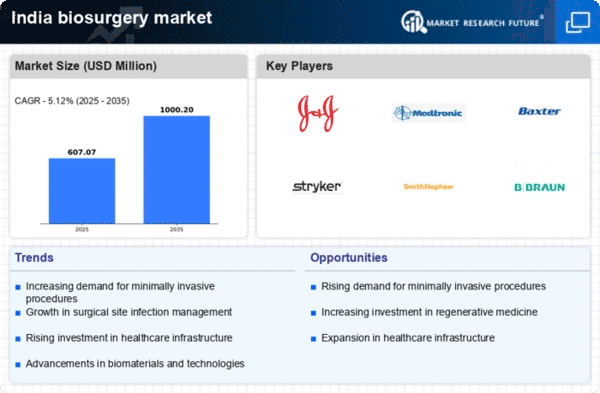 There is a notable increase in awareness regarding advanced wound care solutions among healthcare professionals and patients in India. This awareness is driving the adoption of biosurgical products designed for effective wound management. The biosurgery market is experiencing a shift towards products that promote faster healing and reduce infection rates. Market data indicates that the advanced wound care segment is expected to grow by over 10% annually, reflecting a shift in treatment paradigms. As healthcare providers recognize the benefits of biosurgical interventions, the demand for these products is likely to rise, further propelling the growth of the biosurgery market.