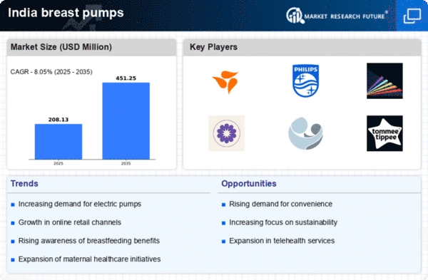 The growing awareness regarding the benefits of breastfeeding is a crucial driver for the breast pumps market. Educational campaigns by healthcare professionals and organizations emphasize the nutritional and emotional advantages of breastfeeding for both infants and mothers. This awareness is likely to lead to an increase in breastfeeding rates, consequently boosting the demand for breast pumps. In India, the breastfeeding rate has shown a positive trend, with approximately 65% of infants being exclusively breastfed for the first six months. This trend suggests a potential growth in the breast pumps market as more mothers seek to balance work and breastfeeding, leading to a higher adoption of breast pumps.