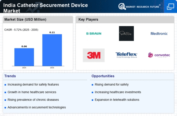 The increasing healthcare expenditure in India is a pivotal driver for the catheter securement-device market. As the government and private sectors allocate more funds towards healthcare, the demand for advanced medical devices, including catheter securement devices, is likely to rise. In 2025, healthcare spending in India is projected to reach approximately $370 billion, reflecting a growth rate of around 12% annually. This surge in investment is expected to enhance the availability and accessibility of catheter securement devices, thereby improving patient outcomes and safety. Furthermore, as hospitals and healthcare facilities expand their services, the need for reliable and effective securement solutions becomes more pronounced, indicating a robust growth trajectory for the catheter securement-device market.
