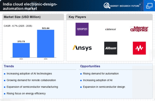 The rise of edge computing and the Internet of Things (IoT) is reshaping the landscape of the cloud electronic-design-automation market in India. As more devices become interconnected, the demand for efficient design tools that can accommodate IoT applications is increasing. Cloud-based electronic design automation solutions are well-positioned to support the development of IoT devices, as they offer the necessary scalability and flexibility. The integration of edge computing allows for real-time data processing and analysis, which is crucial for IoT applications. Reports suggest that the IoT market in India is expected to reach $15 billion by 2025, further driving the need for advanced design tools. Consequently, the cloud electronic-design-automation market is likely to benefit from this trend, as companies seek to develop innovative solutions that meet the demands of an increasingly connected world.