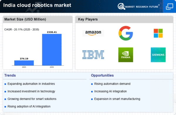 The cloud robotics market is experiencing a notable surge in demand for automation across various sectors. Industries such as manufacturing, logistics, and healthcare are increasingly adopting robotic solutions to enhance operational efficiency and reduce labor costs. According to recent estimates, the automation market in India is projected to grow at a CAGR of approximately 30% over the next five years. This trend indicates a strong inclination towards integrating cloud robotics into existing systems, allowing for real-time data processing and remote management. As businesses seek to optimize their processes, the cloud robotics market is likely to benefit significantly from this rising demand for automation, positioning itself as a critical component in the future of industrial operations.