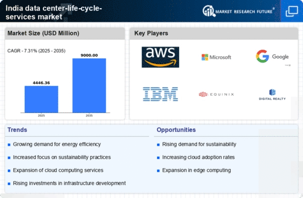 The increasing adoption of cloud services in India is a pivotal driver for the data center-life-cycle-services market. As businesses migrate to cloud-based solutions, the demand for data centers that can support these services escalates. According to recent estimates, the cloud computing market in India is projected to reach $10 billion by 2025, indicating a robust growth trajectory. This shift necessitates enhanced life-cycle services to ensure data centers are optimized for performance, security, and scalability. Consequently, service providers are likely to focus on offering comprehensive life-cycle solutions that encompass design, deployment, and ongoing management, thereby enhancing operational efficiency and reducing downtime.