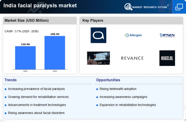 Government initiatives aimed at improving healthcare infrastructure and access to treatment are significantly impacting the facial paralysis market. Programs focused on neurological health and rehabilitation services are being implemented to address the rising burden of facial paralysis. The Indian government has allocated substantial funding to enhance healthcare facilities, which includes specialized centers for neurological disorders. This investment is expected to increase the availability of treatment options for patients suffering from facial paralysis. Moreover, public health campaigns aimed at raising awareness about neurological conditions are likely to encourage more individuals to seek medical help, thereby driving demand in the facial paralysis market. The combination of improved infrastructure and increased awareness may lead to a more robust market environment.