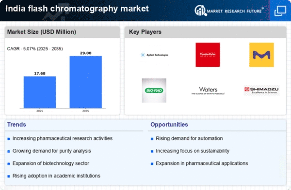 The flash chromatography market in India is experiencing growth due to an increase in research activities across various sectors, particularly in pharmaceuticals and biotechnology. Research institutions and universities are investing significantly in advanced separation techniques, which enhances the demand for flash chromatography systems. The market is projected to grow at a CAGR of approximately 10% over the next five years, driven by the need for efficient and rapid purification methods. This trend indicates a shift towards more sophisticated analytical techniques, as researchers seek to improve the quality and yield of their products. Furthermore, collaborations between academic institutions and industry players are likely to foster innovation in the flash chromatography market, leading to the development of new applications and technologies that cater to the evolving needs of researchers.