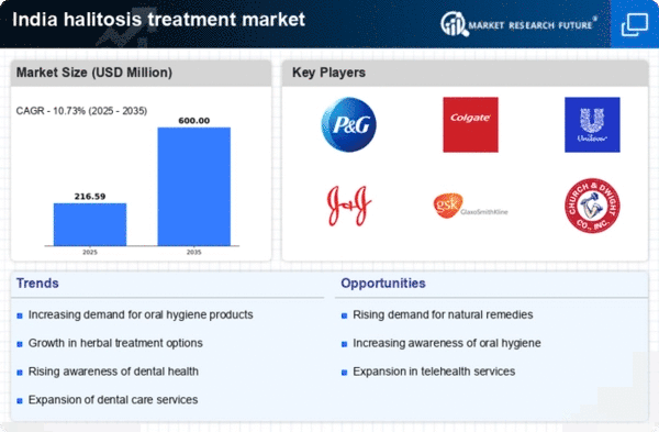 The increasing health consciousness among the Indian population is a pivotal driver for the halitosis treatment market. As individuals become more aware of the implications of oral hygiene on overall health, the demand for effective halitosis treatments is likely to rise. Reports indicate that approximately 70% of Indians prioritize oral health, leading to a surge in the consumption of mouthwashes, breath fresheners, and other related products. This trend suggests that consumers are actively seeking solutions to combat halitosis, thereby propelling the market forward. Furthermore, educational campaigns by dental associations are enhancing awareness about the causes and treatments of halitosis, which could further stimulate market growth. The halitosis treatment market is thus positioned to benefit from this heightened focus on health and wellness, as consumers increasingly invest in products that promise fresher breath and improved oral hygiene.
