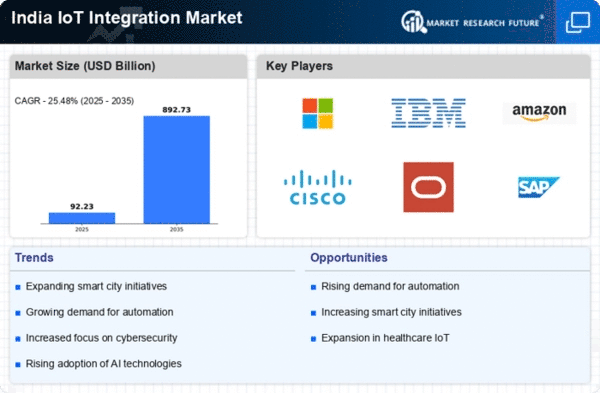 The rapid advancements in telecommunications infrastructure in India are fostering growth in the iot integration market. The rollout of 5G technology is expected to enhance connectivity and enable faster data transmission, which is crucial for IoT applications. With the government investing heavily in expanding broadband access, the potential for IoT solutions to thrive increases significantly. Enhanced connectivity will facilitate the deployment of more sophisticated IoT systems across various sectors, including healthcare, transportation, and agriculture. As a result, the iot integration market is likely to benefit from improved infrastructure, enabling more robust and reliable IoT applications.